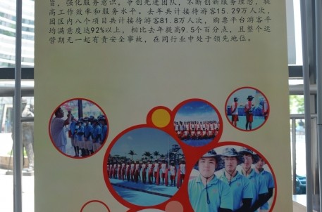 市旅投公司運營管理部乗持“從心出發,創造快樂”的服務宗旨,強化服務意識,爭創先進團隊,不斷創新服務理念,提高工作效卑和服務水平。2017年共計接待游客15,29萬人次,園區內八個項目共計接待游容81.8萬人次,購票平臺游容平均滿意度達92%以上,相比2016年提高9.5個百分點,且整個運營期無一起有責安全事故,在同行業中處于領先地位。