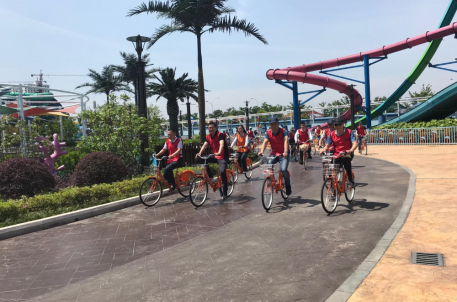 簽約儀式結束后,雙方黨員一起參加了鏡湖樂園正在舉辦的“社會人、愛騎行——騎遇夢幻水世界”的騎行活動,邁出了結對共建的第一步。