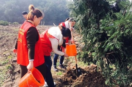 植樹過程中,大家個個熱情高漲、干勁十足,三五人一組,分工合作,配合默契,有的挖坑、有的扶樹、有的培土、有的澆水,每道工序有條不紊,到處一片熱火朝天的勞動場景,時不時地,還能聽到在山間回蕩著的歡聲笑語。眾人拾柴火焰高,經過大家一上午的奮戰,新栽種的綠化苗木在山坡上構成一道靚麗的風景線,大家還紛紛和自己親手栽種的樹苗合影留念。最后,大家集體合影留念,組員們手中高舉勞動工具,歡呼雀躍。