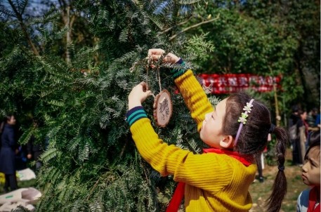 隨后,市民朋友們在現場園藝師的指導下,開始刨坑、下苗、培土、澆水,忙得不亦樂乎。景區還為大家準備了認養牌,寫上美好的祝愿和認養人姓名,親手將它掛在自己所種的香榧樹上,和小樹苗一同滋潤陽光雨露,共同成長進步。