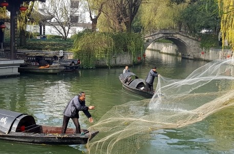 元旦當天,在環山河上,開展了“烏篷迎新”巡游活動。10艘裝飾一新的水城烏篷,齊刷刷地劃開水面,載著紹興的美船娘和香醇的老酒,還有來自五湖四海的朋友,一起蕩漾在悠悠的水巷中。精彩的撒大網表演,讓船上、岸上的游客一片歡騰。戲曲烏篷、古箏烏篷讓游客們感受到了老紹興古樸的風情韻味,烏篷美船娘熱情地向游客兜售黃酒、茴香豆、梅干菜等紹興特產。乘船期間,游客們還能與船老大學說幾句紹興方言,領略一路的紹興文化。