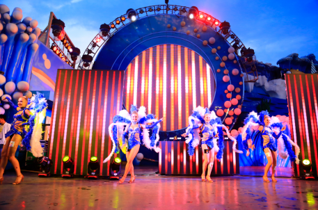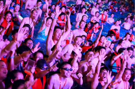 活動雖未開始,但是現場的游客們早已蠢蠢欲動。在造浪池中游客們隨著音樂一起舞動,與現場MC一起互動,更隨著“海浪”一起搖擺。而現場的部落火舞表演,傣族的竹竿舞,還有比基尼姐姐的熱舞等讓游客們體驗到了前所未有的激情體驗