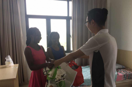 8月11日上午,市旅投公司商業演藝部代表宋銓、茅亦丹兩人將同事們收集的一些衣物捐贈給來自烏干達的演員。兩位烏干達演員接過衣物后,用著并不標準的中文,連聲說著謝謝!謝謝!