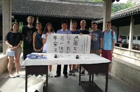 美國塔夫茨大學與蘭亭景區合作舉辦“美國留學生秋季書法短訓班”,自2004年開課至今已有13個年頭了。帶隊的楊杰博士年年都來,對蘭亭已有非常深厚的情誼。他表示:“每年來紹興,總是那么的熟悉親切,雖然只有短短幾天,但這座城市的人文歷史和文化底蘊,讓同學們依依不舍。最讓他們印象深刻的,莫過于在蘭亭上這堂內容豐富、形式獨特的書法課,特別是他們拿到結業證書時,喜悅溢于言表。”