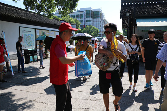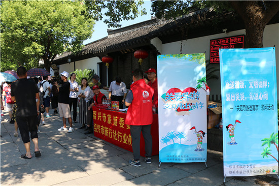 今天上午,紹興市旅游委員會(huì)聯(lián)合紹興市旅行社行業(yè)協(xié)會(huì),在魯迅故里景區(qū)開(kāi)展“關(guān)愛(ài)導(dǎo)游送清涼活動(dòng)”,為辛苦奮斗在旅游活動(dòng)一線的導(dǎo)游員們送上飲用水、防暑急救包、防曬手套等禮品,并真誠(chéng)地向?qū)в螁T們道一聲“謝謝你,辛苦了。”