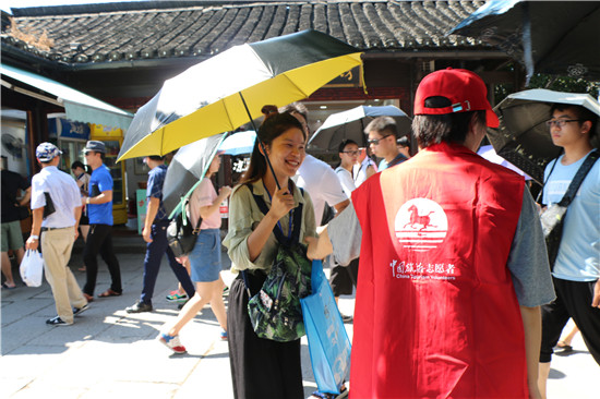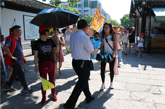 網(wǎng)上流傳著這樣一句俏皮話:“夏天高溫下還能出來(lái)和你玩耍的人都是真愛(ài)”。炎炎夏日,有這么一群人,手持導(dǎo)游小旗,走街串巷,熱情服務(wù),專(zhuān)業(yè)講解,在40多度的高溫下堅(jiān)守崗位第一線,他們就是導(dǎo)游。