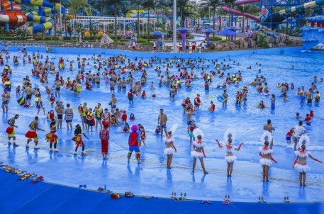 以海洋為主題的鏡湖樂園夢幻水世界,其建筑風格是蔚藍色,有大王椰樹巨陣。藍天、碧水,陣陣浪花如同大海。紹興人不用出遠門,就可有走到大海邊的感覺。這里的水上樂園游樂設施有35條滑道,有造浪池和漂流河等8大游樂項目,其游樂設施和水質處理設備是世界先進水平,人們來此游樂,感到安全、刺激、舒適。越來越多的市民認可了鏡湖樂園的夢幻水世界,樂意來到這里嬉水、玩水,享受碧綠和清涼。
