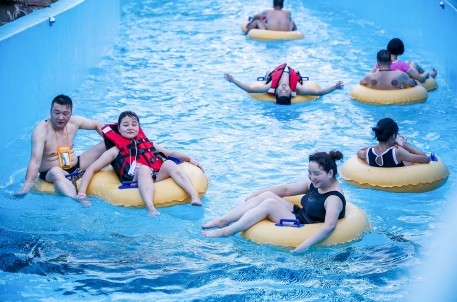 鏡湖樂園負責人告訴記者,這段時間,鏡湖樂觀園夢幻水世界游客紛擁而至,周末每天接待人數超過6000,平時每天有3000人左右。特別是晚上,前來嬉水的游客很多。水世界每天提供烏克蘭、巴西風情舞蹈30場,讓游客泡在水里看演出。這里成為小孩和年輕人的快樂世界。