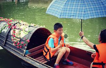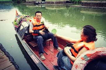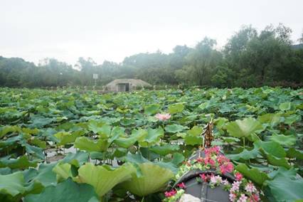 泛舟穿梭在荷田間,近距離欣賞荷花的清雅,水塘里荷葉飄搖,水氣彌漫,置身如畫景色中,伴著徐徐微風,自己動手剝著清甜的蓮蓬,別有一番情趣~