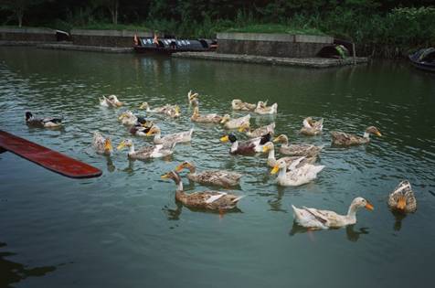 還有一群可愛的野鴨追逐著烏篷船和游客們熱情地互動。