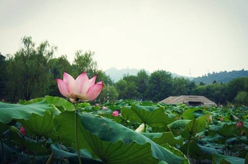 放眼望去,密密麻麻的荷葉鋪在水面上,綠意盎然。有的含苞待放,有的張開了三四片花瓣,有的全部盛開了,如一位位亭亭玉立的少女。