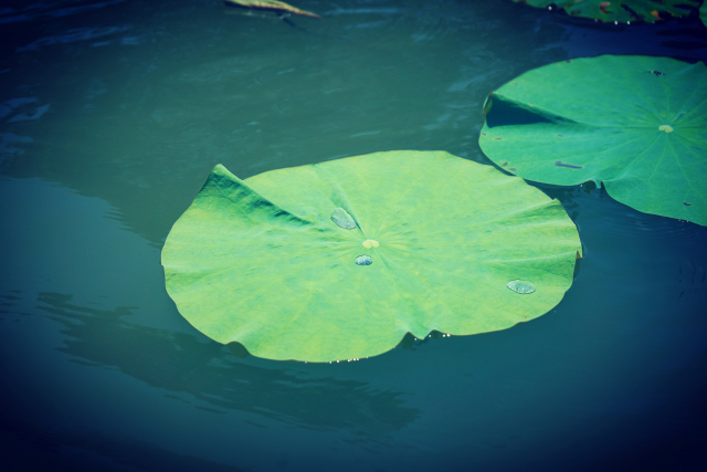 晶瑩透明的露水在荷葉上調皮地跑動,一陣風吹來,像斷了線的珍珠一樣往下滴。