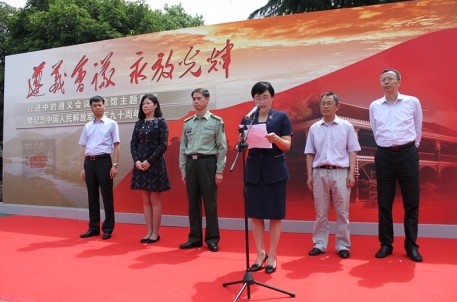 5月19日上午10點(diǎn),“遵義會(huì)議 永放光輝——行進(jìn)中的遵義會(huì)議紀(jì)念館主題展覽暨紀(jì)念建軍90周年展覽”走進(jìn)紹興,在周恩來(lái)紀(jì)念館舉行啟動(dòng)儀式。出席啟動(dòng)儀式的領(lǐng)導(dǎo)有中共紹興市委宣傳部副部長(zhǎng)黃愛(ài)芬、中共遵義市委宣傳部副部長(zhǎng)周俊南、紹興市軍分區(qū)政治部主任呂社生、紹興市黨史研究室副主任金燕、遵義會(huì)議紀(jì)念館館長(zhǎng)陳松、遵義歷史文化研究會(huì)秘書(shū)長(zhǎng)陸昌友、紹興周恩來(lái)紀(jì)念館館長(zhǎng)曾紹暉。參加啟動(dòng)儀式的還有市級(jí)機(jī)關(guān)黨員干部代表,駐紹部隊(duì)官兵代表。紹興市旅游集團(tuán)副總經(jīng)理仲麗華主持儀式。