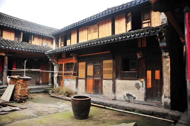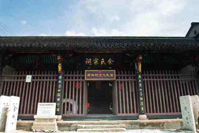村口不遠(yuǎn)處便是余氏宗祠,它建于清朝乾隆年間,坐北朝南,由前后兩進(jìn)和東西看樓組成,內(nèi)置一個(gè)古戲臺(tái),這座古戲臺(tái)建筑考究,雕飾華麗。每年的農(nóng)歷十二月十六日是村里祭禹的日子,地點(diǎn)就在余氏宗祠里。