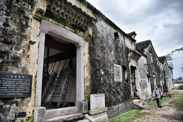 從余氏宗祠出來,一路可以參觀還保存完好的明清時(shí)期建造的6座古臺(tái)門:老臺(tái)門、新臺(tái)門、上大院、下新屋、朝西臺(tái)門、高新屋臺(tái)門,這些古臺(tái)門如今依然是村民們的寄居之所。雖然屋子周圍堆放著柴火、農(nóng)具等不少雜物,看上去有些破舊與凌亂,但是從房屋的整體結(jié)構(gòu),從石刻、木雕等許多細(xì)節(jié)處,我們依然可以找尋到它曾經(jīng)的輝煌。