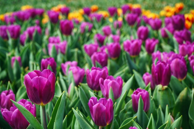 會稽山的花卉園生長著30萬株郁金香,不同季節還有各式的花朵在青山綠水間盡情滋長,能滿足你對浪漫的所有幻想!清波粼粼的環河畔,碧草如茵的平原上,已成一片花海。