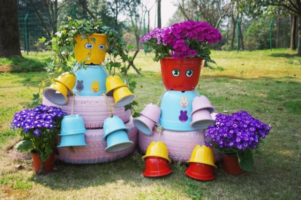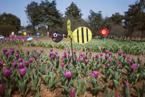瞧!可愛(ài)的花盆小人、辛勤的小蜜蜂守護(hù)在郁金香周?chē)o花海平添了更多生機(jī)!