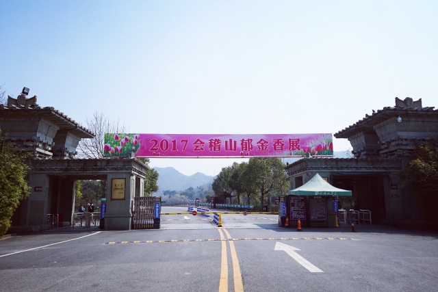 到達(dá)會(huì)稽山(大禹陵)景區(qū)的游客,請(qǐng)先在對(duì)面游客中心購(gòu)票后進(jìn)入此大入口,郁金香展就在里面哦!