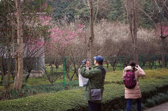 不少游客忍不住大贊這梅花盛景,除了駐足拍照的游人之外,還有不少攝影愛(ài)好者特地前來(lái),記錄下這賞心悅目的美麗景致。