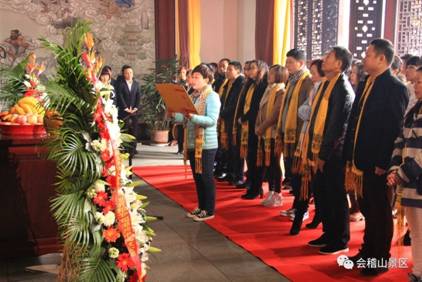 9 時50分,祭祀活動正式開始。全體肅立、鳴禮炮、敬獻祭品、敬獻花籃、紹興市姒族研究會會長、大禹第143代孫姒茂利誦讀祭文,后裔族人代表先后向大禹像鞠躬、敬香,代表全體大禹后裔向祖先行禮,以祈求來年風調雨順,五谷豐登。