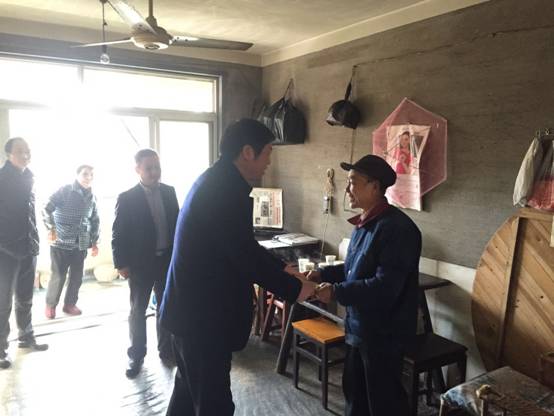 1月20日,集團公司董事長沈安龍看望慰問會稽山景區困難職工姒南根。