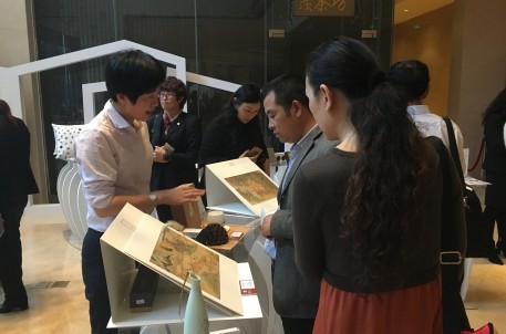 我景區(qū)“蘭亭的故事”系列文創(chuàng)產(chǎn)品被市領(lǐng)導欽點參加了本次黃酒節(jié)。11月4日開始,我們的產(chǎn)品亮相世貿(mào)皇冠假日酒店,進行了為期5天的集中展示,我們精心挑選的涵蓋蘭亭集序——書法系列、曲水流觴——雅集系列、羲之愛鵝——鵝系列,蘭亭說蘭——蘭系列、茂林修竹——竹系列、人文薈萃——紹興名人系列等六大系列的代表性文創(chuàng)產(chǎn)品,以及為本次黃酒節(jié)專門設(shè)計的“光影紹興”、“丹青紹興”兩套明信片,吸引了一批又一批入駐酒店的黃酒節(jié)嘉賓和參加迷笛音樂節(jié)的年輕人的眼球。