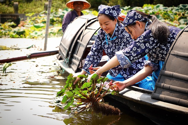 乘坐景區烏篷船,領略會稽山的自然風光,賞采菱,品紅菱,體會景區豐富內涵,感受多層次魅力。