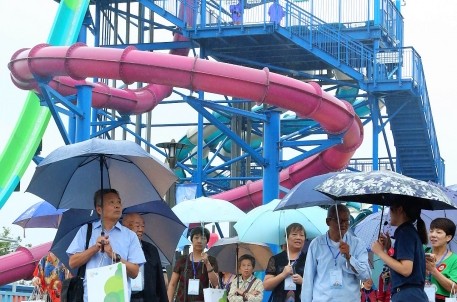 9月7日上午,26名曾經(jīng)為旅游集團(tuán)事業(yè)做出貢獻(xiàn)的老領(lǐng)導(dǎo)、老前輩們?cè)谑新猛豆绢I(lǐng)導(dǎo)與工作人員的陪同下,興致勃勃地參觀了鏡湖樂(lè)園夢(mèng)幻水世界項(xiàng)目。