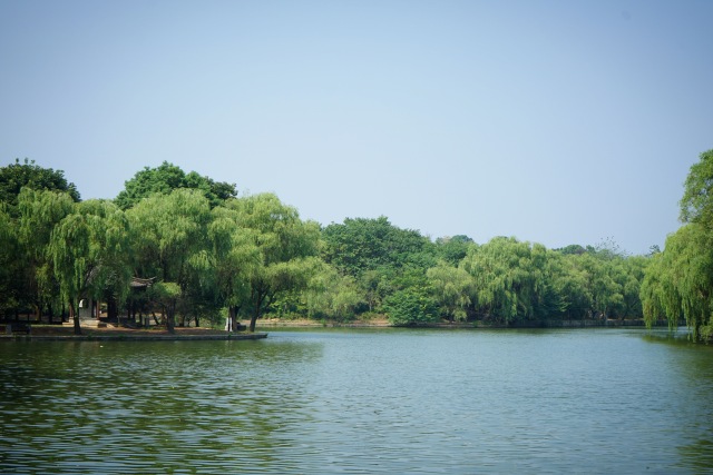 碧波蕩漾,成群的野鴨在池子里嬉水,不時(shí)還可以見(jiàn)到白鷺從湖面掠過(guò),一派和諧的自然風(fēng)光。