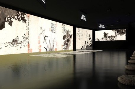 在我館展覽的三個月期間,不斷有從全國各地趕來看展的觀眾,許多參觀者紛紛表示,這是近幾年來規模最大、內容最豐富、形式最新穎的徐渭個人書畫展。來自故宮博物院和紹興市文物管理局的多件徐渭一、二級藏品,極具觀賞性和研究性。整個展覽在展陳方面也首次突破了傳統的展覽模式,在徐渭書畫作品展的同時加入了多媒體感映展,用聲、光、電等高科技手段重現徐渭作品,讓靜態的畫面鮮活起來,整幅放大、局部精看,給人以視覺上的沖擊,是一場不可多得的視覺文化盛宴。作為展覽的延伸,有著“徐渭”元素的文創產品,以展覽的形式呈現,正真做到了產品與展覽的結合,文化與藝術的連接。在撤展前兩天甚至還有外地的“徐渭迷”專程趕來看展。