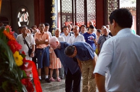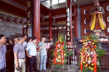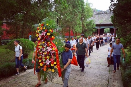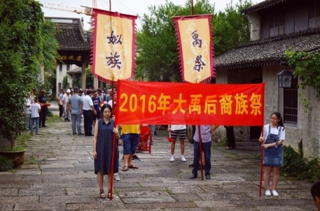 農歷六月初六,是古代治水英雄,華夏人文始祖—大禹誕辰紀念日。 來自姒族守陵村村民和各地的大禹后裔代表齊聚大禹陵,隆重舉行2016大禹誕辰民間祭祀活動。上午9時18分,在鞭炮聲中,百余人著正裝,抬著牛、羊、豬頭,五谷雜糧,水果等祭品,從守陵村出發,手舉姒族祭禹旗幟,浩浩蕩蕩前往大禹陵禹廟大殿祭祀。9 時50分,祭祀活動正式開始。全體肅立、鳴禮炮、敬獻祭品、敬獻花籃、紹興市姒族研究會會長、大禹第143代孫姒茂利誦讀祭文,后裔族人姒姓、夏姓、鮑姓、禹姓、婁姓代表先后向大禹像鞠躬、敬香,代表全體大禹后裔向祖先行禮,以祈求來年風調雨順,五谷豐登。現年86歲的鮑姓代表激動地說:“每年六月初六,我們都要自發組織祭祀大禹活動,整個場面莊嚴隆重。大禹是我們的保護神,老百姓紀念他,一來表達我們對大禹的崇敬和緬懷之情,二來祈求來年風調雨順。”
