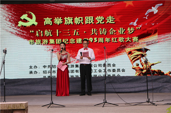 “高舉旗幟跟黨走——啟航十三五·共鑄企業(yè)夢”,6月29日下午,沈園景區(qū)南苑劇場紅歌嘹亮,由中共紹興市旅游集團有限公司委員會主辦,紹興市旅游集團有限公司工會工作委員會、共青團紹興市旅游集團有限公司委員會承辦的“紹興市旅游集團紀念建黨95周年紅歌大賽”在這里舉行。