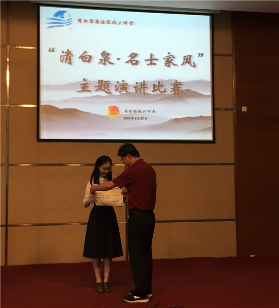為大力弘揚中華傳統家庭美德,彰顯紹興“名士之鄉”文化底蘊,由紹興團市委組織的 “清白泉·名士家風”主題演講比賽決賽今日在市委黨校舉行。來自全市各市直單位的14名選手參加決賽,我館選手周潔、胡靜雯分別獲得一等獎、三等獎的好成績。