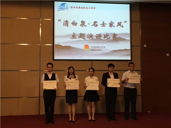 今年4月以來,團市委在各市直單位團組織中開展“清白泉·名士家風”主題演講比賽。選手們通過學習、挖掘周恩來、蔡元培、魯迅等諸多紹興名人家風,結合當前“兩學一做”學習教育活動和作風建設要求,暢談現代人該如何傳承、傳播、和踐行名人家風,弘揚傳統的美德,進一步弘揚社會主義核心價值觀。經過機關組、企業組、學校組的三場預賽,共有14名選手入圍今天的決賽。