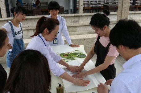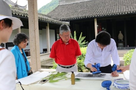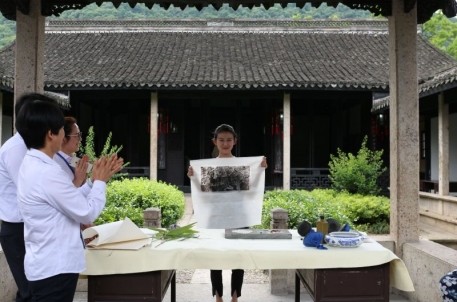 在第40個國際博物館來臨之際,我館特推出尋葉拓畫——讓文字和圖畫來一場“古今結合”的活動。整個活動在右軍祠墨華亭內舉行,游客在館外尋找散落的樹葉和花瓣,通過對不同葉形的觀察和組合,利用葉形的原始狀態進行創造,拼湊成特別的文字和圖畫,利用古代印刷技術,拓印到宣紙上。在拓印的過程中引來了不少游客的圍觀,有年近花甲的老人,有玩鬧的小朋友。不少游客還親自動手進行拓印。