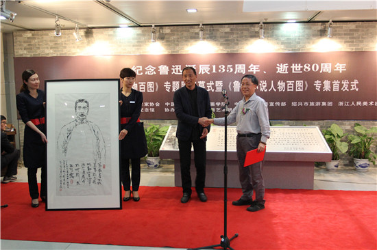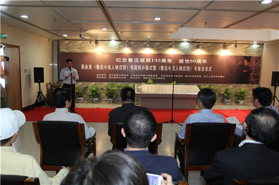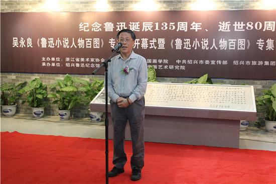 今天上午11時,由浙江省美術家協會、中國美院中國畫學院、中共紹興市委宣傳部、紹興市旅游集團、浙江人民美術出版社主辦,紹興魯迅紀念館承辦,青藤書畫藝術研究院協辦的吳永良《魯迅小說人物百圖》專題展開幕式暨吳永良《魯迅小說人物百圖》畫集首發式在紹興魯迅紀念館舉行。5月18日是國際博物館日,今年的主題是“博物館與文化景觀”,紹興魯迅紀念館旨在通過這樣一場展覽,使原本靜態的文化景觀和文化遺產,呈現出鮮活的生命狀態。這既是對魯迅誕辰135周年、逝世80周年的紀念,也讓先生之風與紹興文化得到了當代性的藝術傳播。