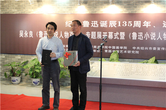 開幕式上,紹興市旅游集團董事長沈安龍致開幕辭,浙江省美術家協會副主席兼秘書長駱獻躍、浙江人民美術出版社總編輯金光遠等分別發表講話,中國美術學院教授、畫展及畫集作者吳永良致答謝辭,中共紹興市委宣傳部副部長何俊杰發表講話并宣布展覽開幕。浙江人民美術出版社與吳永良先生還分別向紹興魯迅紀念館捐贈了吳永良《魯迅小說人物百圖》畫集及吳永良作品——魯迅肖像指墨畫。