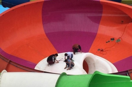 體滑道連接處進行了專業清潔拋光,打蠟,確保運營期間滑道的安