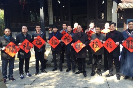 在活躍節(jié)日氛圍的同時(shí),景區(qū)更是致力于書法文化的傳承。專門邀請(qǐng)紹興書會(huì)的書家老師相聚蘭亭,于王右軍祠內(nèi)上香行禮,誦晉圣辭,遙想千年,祭拜書圣;還一起在流觴亭前揮毫潑墨,書寫春聯(lián),讓游客朋友們把新年的“?!睔鈳Щ丶摇?br />