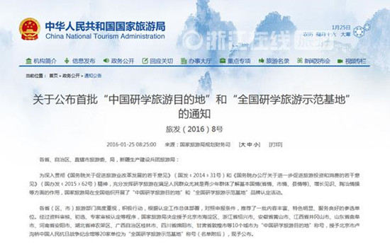 首批研學(xué)旅游目的地名單發(fā)布后,浙江在線記者第一時(shí)間采訪到了浙江省旅游局政策法規(guī)處處長(zhǎng)張雄文。他告訴記者,國(guó)家大力推進(jìn)“旅游+”的深入,明確指出要推進(jìn)“旅游+研學(xué)(教育)”。國(guó)務(wù)院辦公廳也接連發(fā)布了《國(guó)務(wù)院關(guān)于促進(jìn)旅游業(yè)改革發(fā)展的若干意見(jiàn)》,《關(guān)于進(jìn)一步促進(jìn)旅游投資和消費(fèi)的若干意見(jiàn)》。其中明確指出,要支持研學(xué)旅行發(fā)展。充分發(fā)揮研學(xué)旅游在滿足人民群眾尤其是青少年群體了解基本國(guó)情(省情、市情、縣情等)、增長(zhǎng)見(jiàn)識(shí)、陶冶情操等方面的作用,把研學(xué)旅行納入學(xué)生綜合素質(zhì)教育范疇。所以國(guó)家旅游局在全國(guó)組織開展了“中國(guó)研學(xué)旅游目的地”和“全國(guó)研學(xué)旅游示范基地”品牌認(rèn)定活動(dòng)。