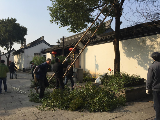 魯迅故里街區(qū)兩側(cè)樹(shù)木較為高大,如遇暴雪積壓,容易折斷傷及路人,景區(qū)工作人員對(duì)較長(zhǎng)的側(cè)枝進(jìn)行修剪,確保行人通行安全。另外,沈園、魯迅故里景區(qū)內(nèi),地面多為青石板,惡劣寒冷天氣下,容易結(jié)冰危及行人。景區(qū)未“雪”綢繆,準(zhǔn)備了掃把、鐵鍬、麻袋等設(shè)備,并組織安排積雪清掃人員,扎實(shí)做好道路清雪防滑“戰(zhàn)備”工作,確保屆時(shí)人員反應(yīng)迅速、應(yīng)急工作到位、道路暢通無(wú)阻,景區(qū)安全有序。