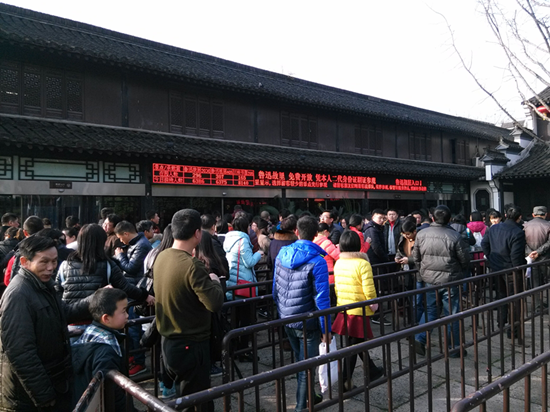 魯迅故里景區(qū)東入口處早早豎起了《擁擠踩踏事故防范》安全提醒牌。景區(qū)內(nèi)游客雖多,但經(jīng)過(guò)各景點(diǎn)分流,游客只需根據(jù)各景點(diǎn)門(mén)口LED屏上顯示的即時(shí)在園人數(shù),優(yōu)先選擇人數(shù)較少的景點(diǎn)參觀,排上一小會(huì)兒的隊(duì)伍就可以進(jìn)入景點(diǎn)參觀,參觀質(zhì)量大大提高。景區(qū)內(nèi)游客排隊(duì)秩序井然,街景上極少看到果皮紙屑的蹤跡。
