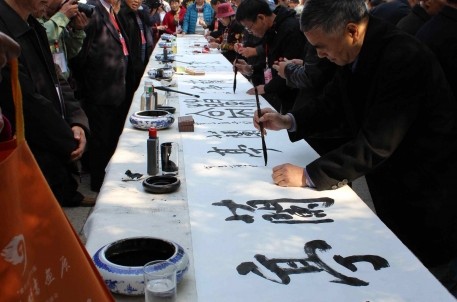 此次活動由《中國書畫導報》編輯部主辦,邀請了來自全國各地400余位中老年書畫家攜手成行。老師們在興致勃勃地參觀、了解景區核心區的文化歷史后,隨即分組在流觴亭前書寫以“蘭亭”兩字為主要內容的書法長卷。千遍“蘭亭”,千種風情,為書法圣地再添一景。