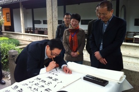 2013年11月13日,原全國人大副委員長華建敏及夫人一行在紹興市人民政府市長俞志宏的陪同下,前來書法圣地——蘭亭景區參觀指導。