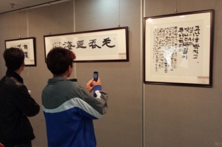 由蘭亭書會和韓國書學會共同主辦的《群賢畢至——中韓書法名家十人展》日前在魯迅紀念館臨展廳展出,展出作品由蘭亭書會和韓國書學會10位書法名家創作,展覽不僅帶來了韓國獨特而優秀的文化精神,還使中韓兩種既有淵源而又有差異的傳統文化得到交流碰撞。