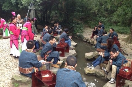 活動(dòng)期間來賓們舉行了改稿會(huì)并在書法圣地——蘭亭景區(qū)舉行了蘭亭采風(fēng)暨曲水流觴詩歌朗誦交流會(huì)。活動(dòng)中各位來賓著晉服、飲黃酒、吟佳作,酒興之余,還不忘揮毫潑墨,提筆書寫“詩會(huì)蘭亭”等書法作品,頗顯才情。青年詩人們表示:“青春詩會(huì)不僅是培養(yǎng)優(yōu)秀詩人、發(fā)現(xiàn)優(yōu)秀詩人的平臺(tái),更是中國詩歌走向世界的窗口。而蘭亭作為中國書法的圣地,更是大家神馳向往的精神家園,詩詞與書畫的巧妙結(jié)合和完美演繹是最令人振奮的。”