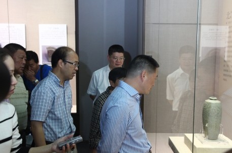 《范金琢玉——耀州窯陶瓷精品展》匯集了陜西省銅川市耀州窯各個朝代時期的100余件珍貴文物。錢建民書記在參觀過程中饒有興趣的詢問了耀州窯的燒制特征,以及耀州窯與越窯青瓷的區別。并對此次展覽給予了高度肯定。
