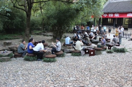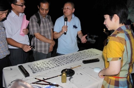 在長達三個小時熱情洋溢的研討后,與會來賓還趁著夜色赴曲水流觴處,效仿古人飲酒賦詩,洋洋灑灑寫下諸多訪蘭亭感想和心曲。