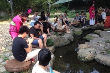 9月14日下午,同程網浙江區總監高元甲率江蘇市場的營銷員前來景區考察參觀。來賓們此行主要是為提升景區休閑體驗產品做一個較為全面的市場調研,從而更好的挖掘景區內涵,開發更適宜的旅游活動。 來賓們一行認真聆聽景點講解后,還親身參與了仿古的曲水流觴活動。他們不僅效仿古人即興賦詩,還吟誦了古人的經典詩篇,真可謂“古今結合,熱鬧非凡”啊! 紹興蘭亭景區 徐燕燕