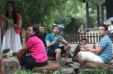 歷時三天的美國留學生蘭亭書法短訓班于今天下午在蘭亭景區曲水流觴景點輕松自如的氛圍里落下帷幕,這也是美國大學生連續第十個年頭來蘭亭景區練習中國書法,體驗中國文化了。